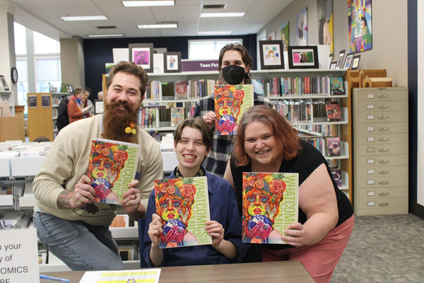 WCLS and WTA have partnered to add a selection of each year’s Whatcomics art to the ceiling on the inside and the panels on the outside of a WTA bus. We’ll have the newest Whatcomics bus open to tour at the January celebration event. Look for this “traveling art exhibit” on bus routes throughout the county year-round. Youth ride free on all WTA buses – so hop aboard any time and enjoy the art!